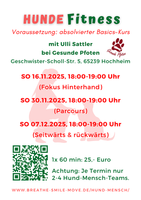 Als langjährig Selbständige im Bereich „Menschenfitness“ verknüpfe ich meine Leidenschaften und Expertisen aus den Bereichen Bewegung, Coaching und Persönlichkeitsentwicklung mit dem Hundefitness und der Arbeit an Hund-Mensch-Beziehungen.